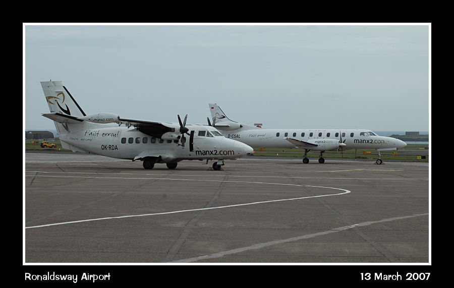 Two Manx 2 aircraft on the west apron, Let410 OK-RDA and Metroliner D-CSAL