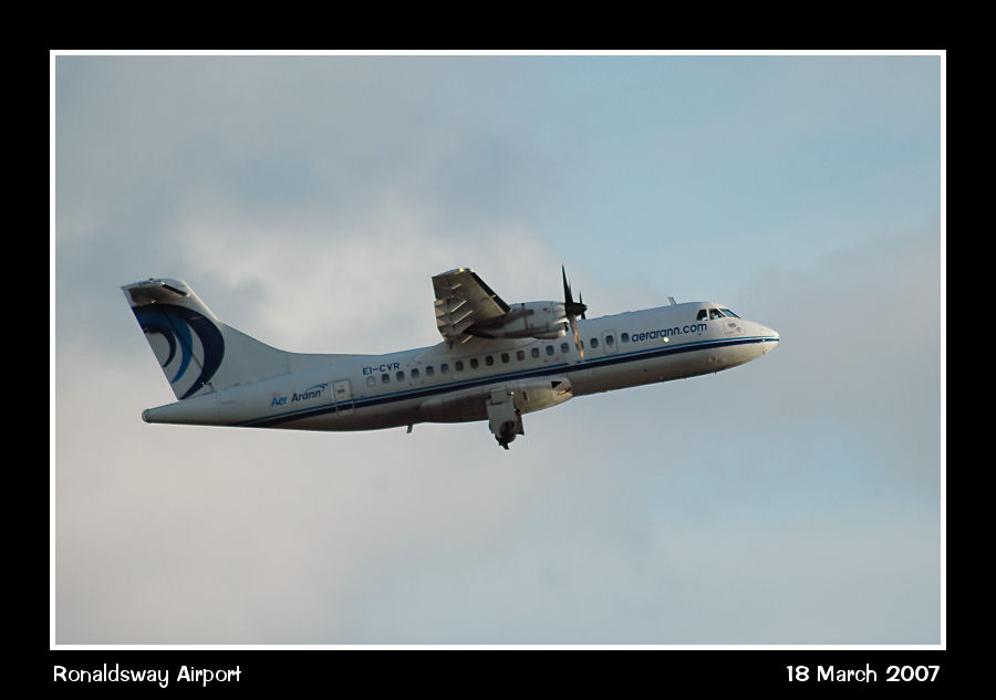 Aer Arann ATR42, EI-CVR, just airborne at Ronaldsway and heading for Dublin
