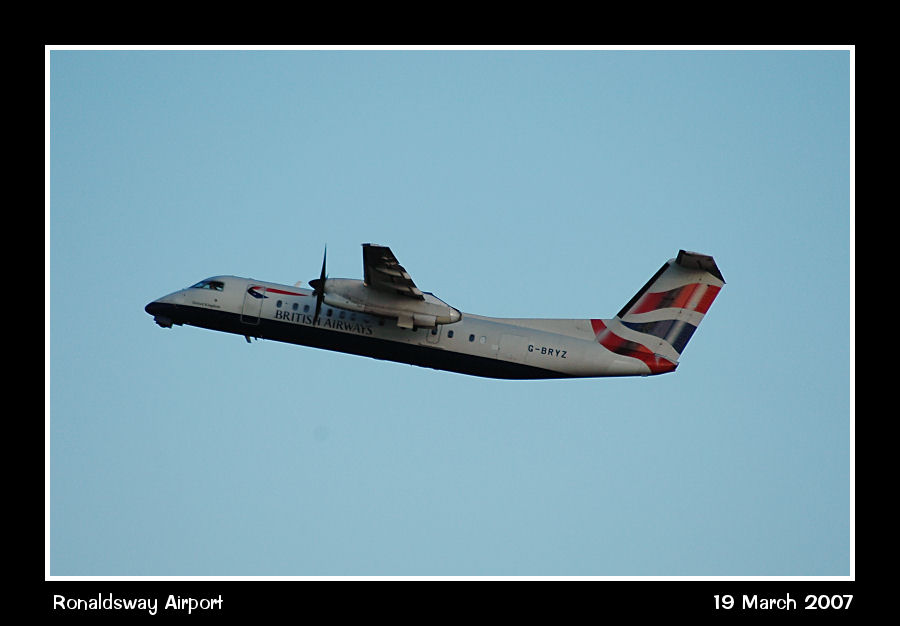 Ba Connect Dash8-Q300, G-BRYZ, climbs out steeply after departure for Manchester