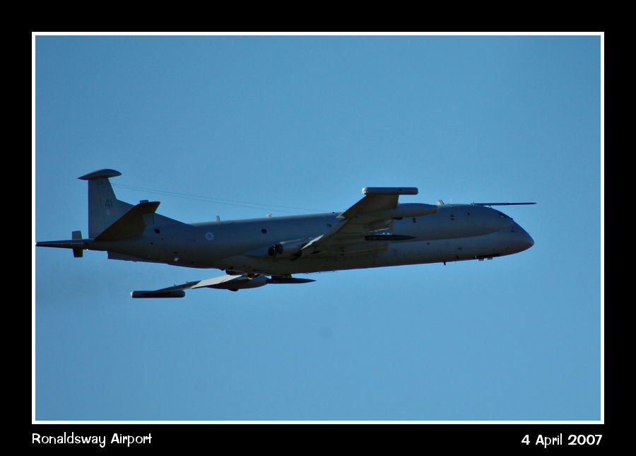 RAF Kinloss Wing Nimrod MR2, XV241, climbs out after a practice approach, note missiles