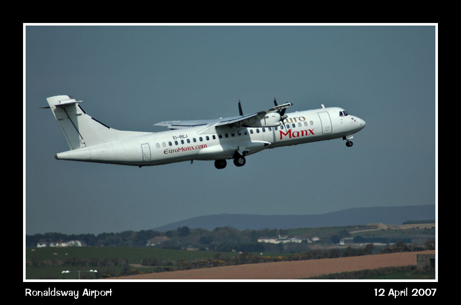 EuroManx ATR72, EI-REJ, climbs away from the runway, bound for Liverpool