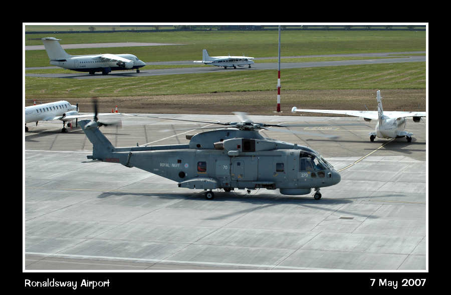 Royal Navy Merlin ZH863 CU270 taxies in for a refuel at Ronaldsway