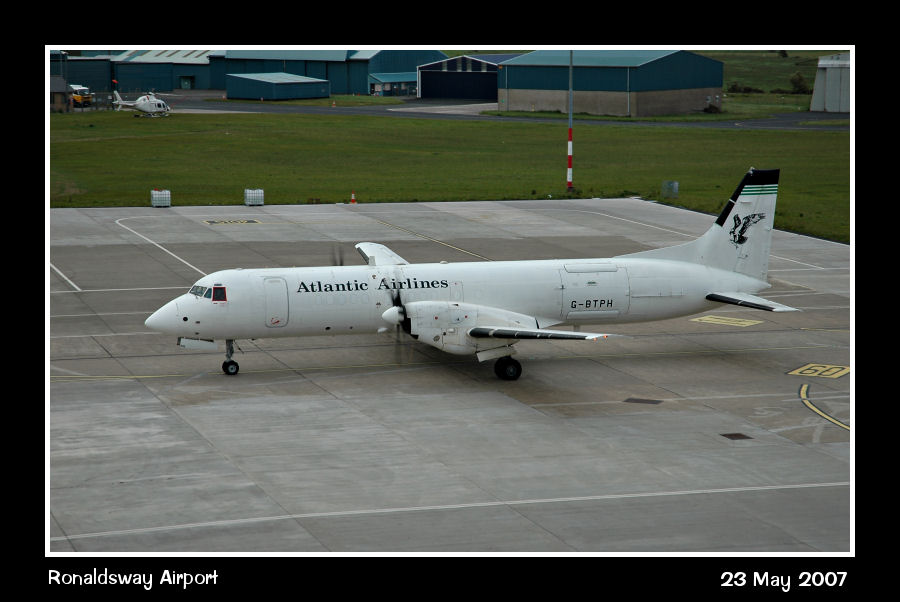 The morning inbound Mail flight arrives on the east apron, operated by Atlantic Airlines ATP G-BTPH, fitted with a large cargo door