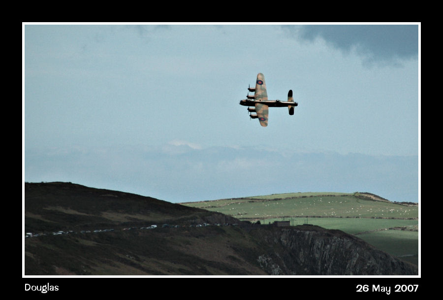 A nice view of the Lancaster picked out by the sun as it banks over Howstrake