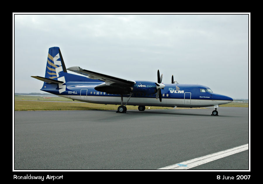 More normally seen at Ronaldsway on their London City service, this VLM Fokker 50, OO-VLL, had operated a charter in from Edinburgh