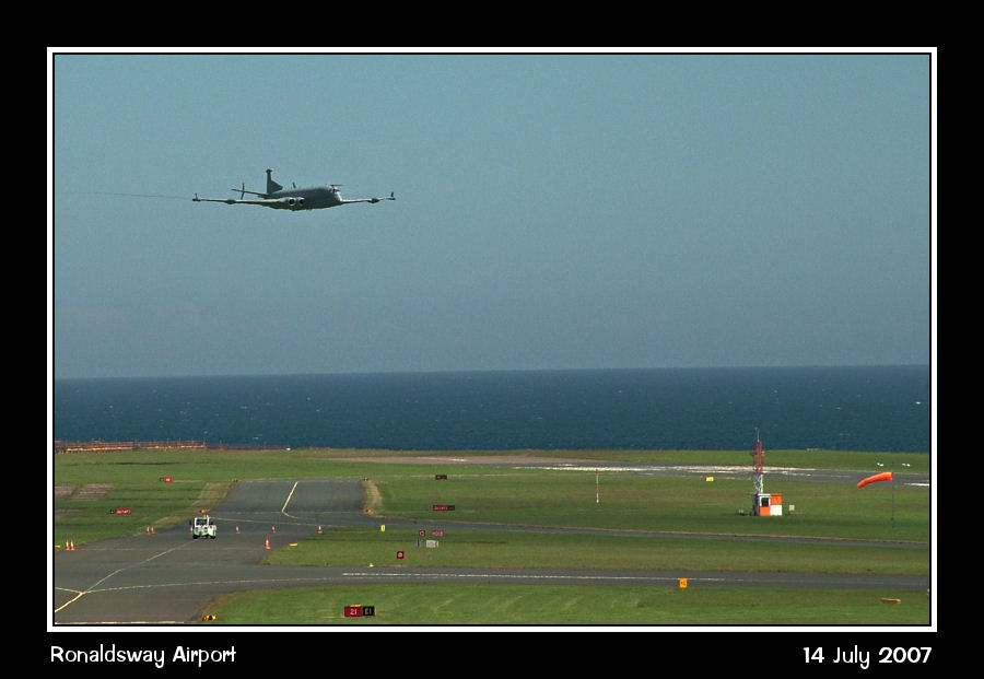 Operating on a test flight from Warton, Nimrod MR4, ZJ516, 'Avro 6' approaches the airfield for a low pass with gear up