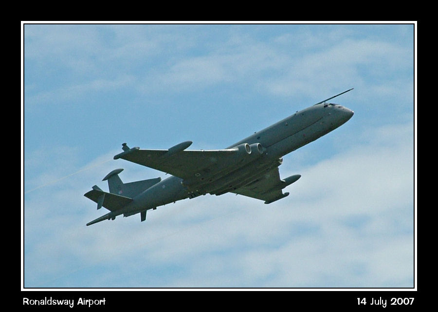 A closer view of Nimrod MR4, ZJ516, as it climbs away