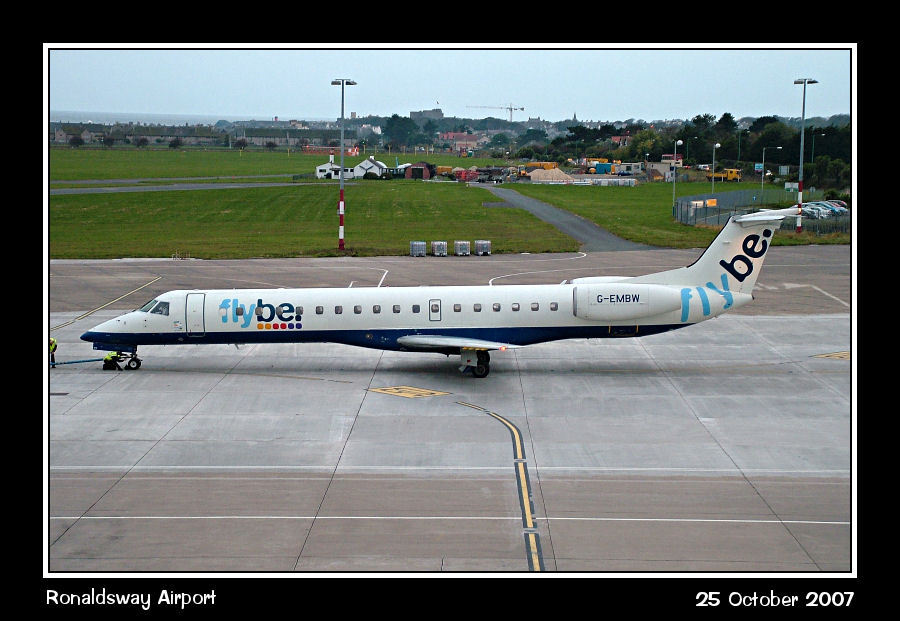 FlyBe ERJ145, G-EMBW, has just completed pushback for departure to Birmingham
