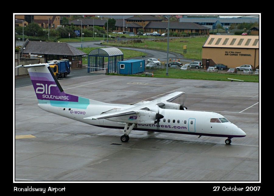 On the last day of Air Southwest operations for FlyBe, Dash8-300 G-WOWD taxies for Manchester