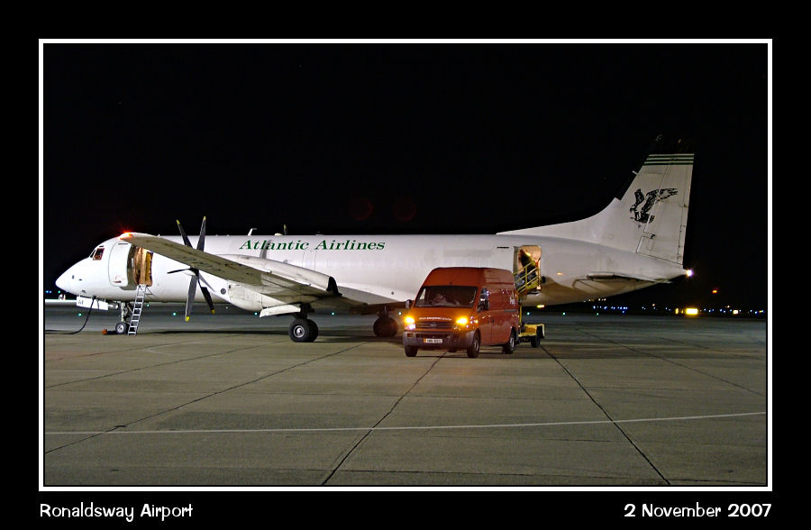 Atlantic Airlines ATP, G-OOAF, being loaded with the outgoing mail
