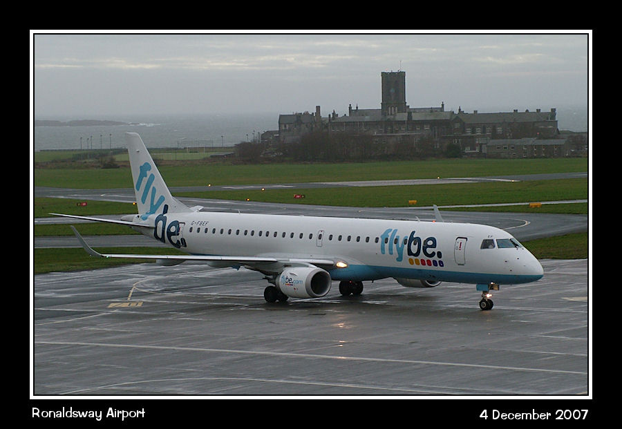 FlyBe ERJ195, G-FBEF, taxies onto the west apron