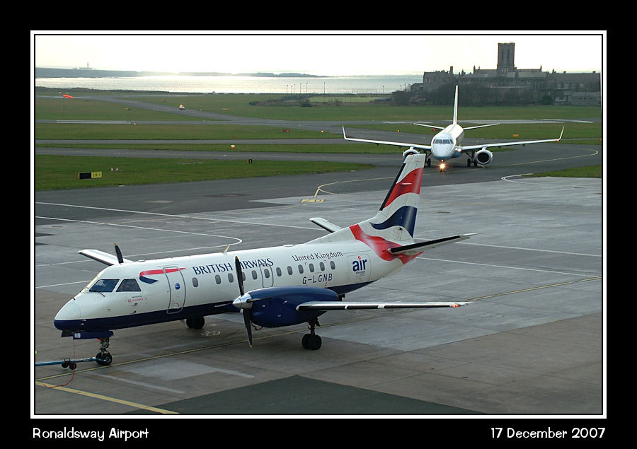 Loganair Saab 340B, G-LGNB awaits start and pushback before returning to Scotland