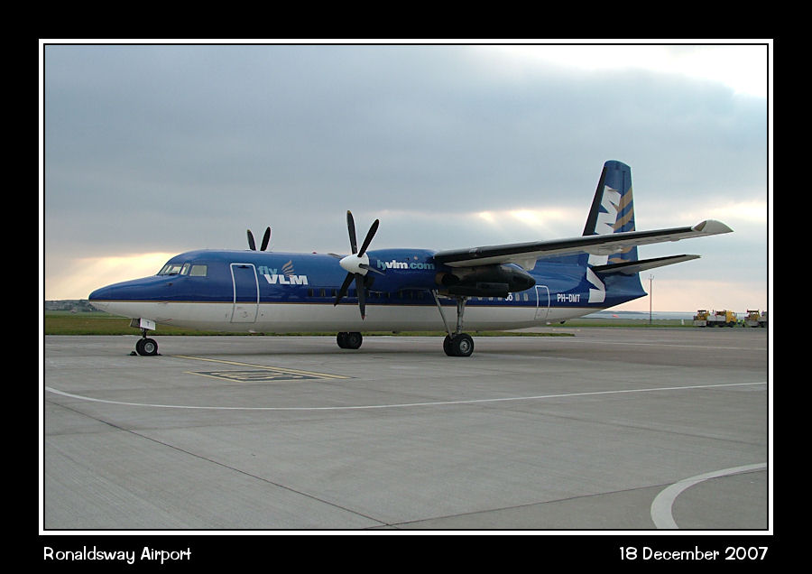 VLM Fokker 50 PH-DMT parked on stand 14. This flight arrives in the morning from London City and departs on the return journey late afternoon