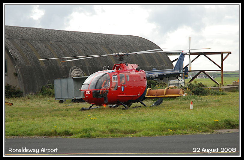 Northern Lighthouse Board Bolkow 105, G-BUXS, just arrived back from the Chicken Rock