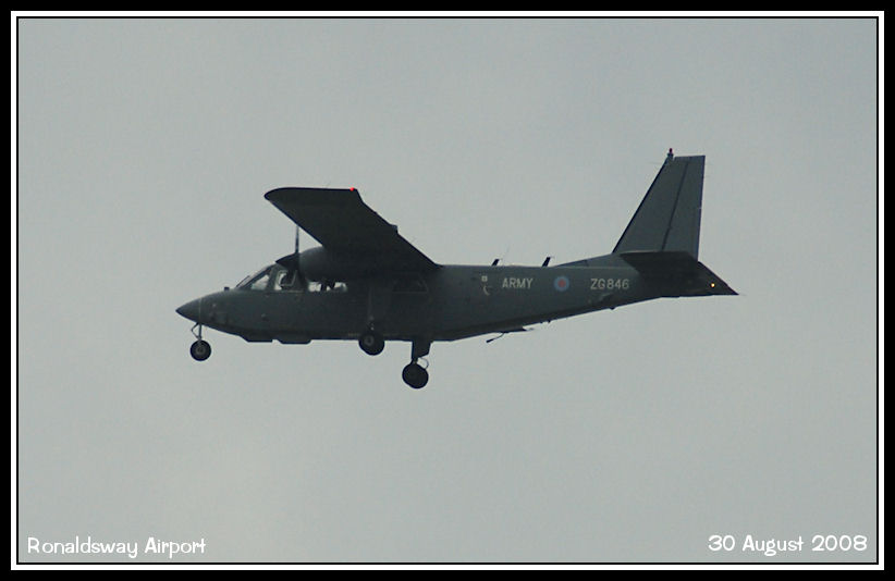 Army Air Corps BN Islander ZG846 climbs away from a practice approach