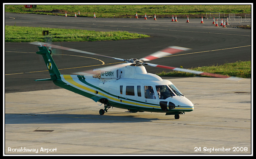 Normally based in the north of the island, Sikorsky S76 M-ERRY taxies onto the west apron