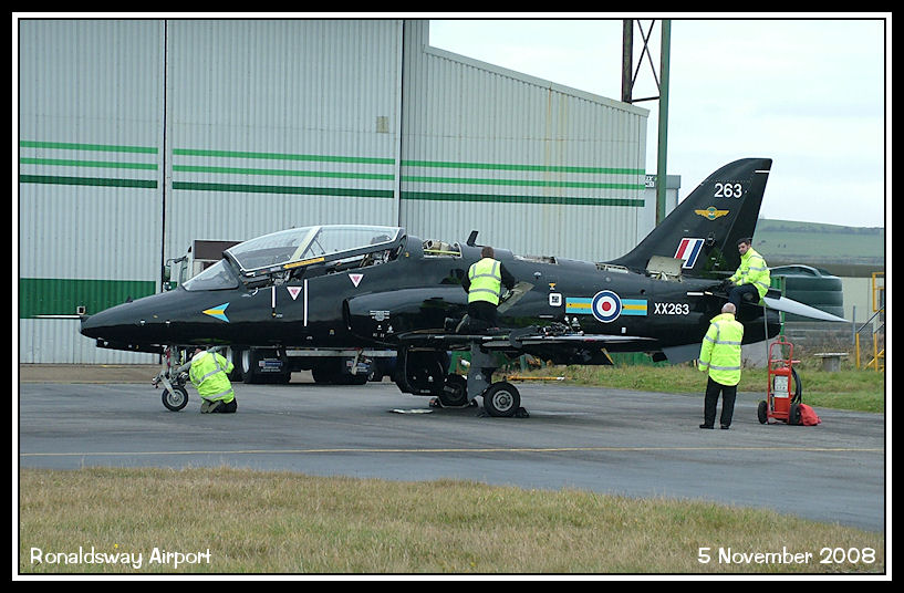 RAF 208 Sqn Hawk T1A, XX263, having attention after making a precautionarry diversion last week