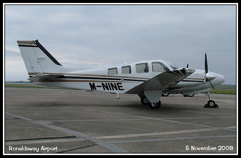 Manx registered Beech Baron, M-NINE, on the west apron during a visit to the island