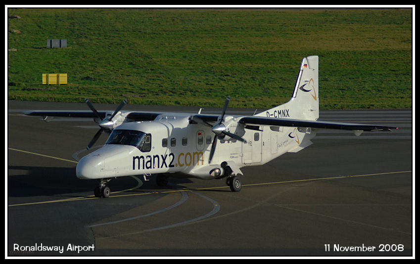 Manx2 Dornier 228, D-CMNX, taxies in after a local training flight