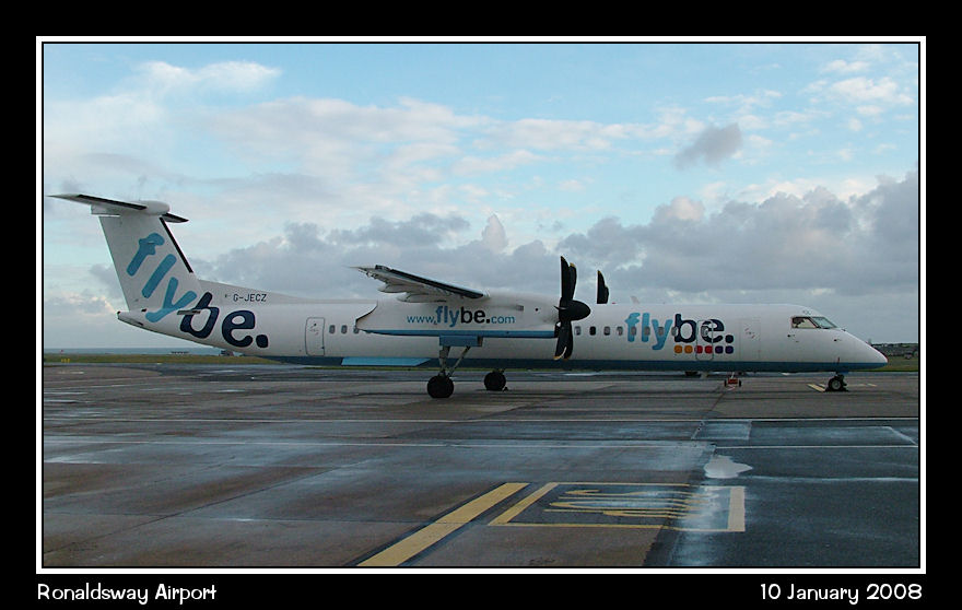 One of the two based FlyBe Dash8-Q400s at the moment is G-JECZ