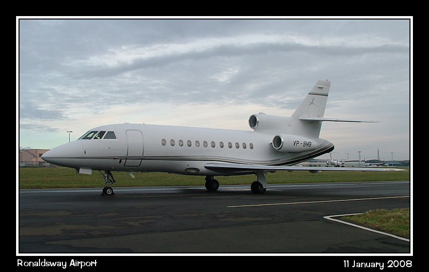 Falcon 900 VP-BMB parked at 'Area Victor'. It later departed direct to Bermuda