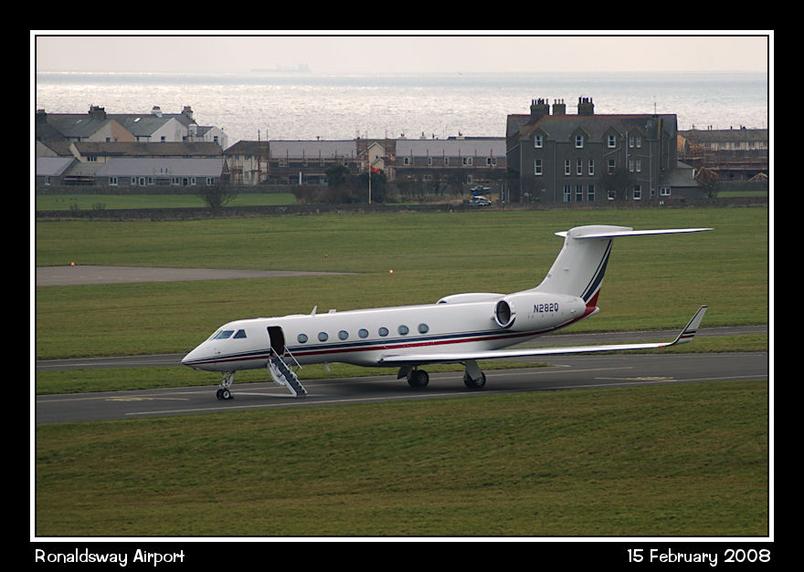 Gulfstream 5, N282Q, parked at 'Area Victor', later departing direct to Wilmington NC USA