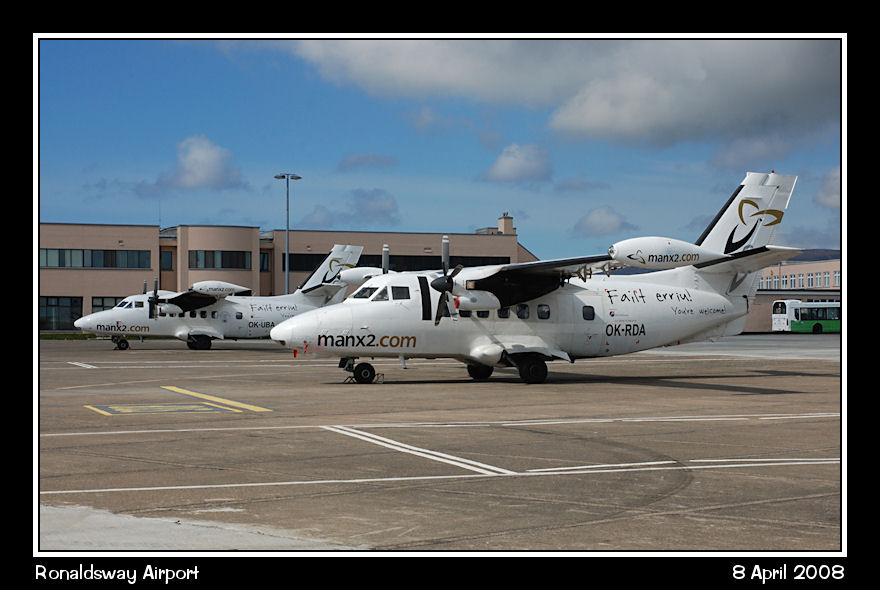 The two Manx 2 Let 410s, OK-RDA & OK-UBA pause between duties on the west apron