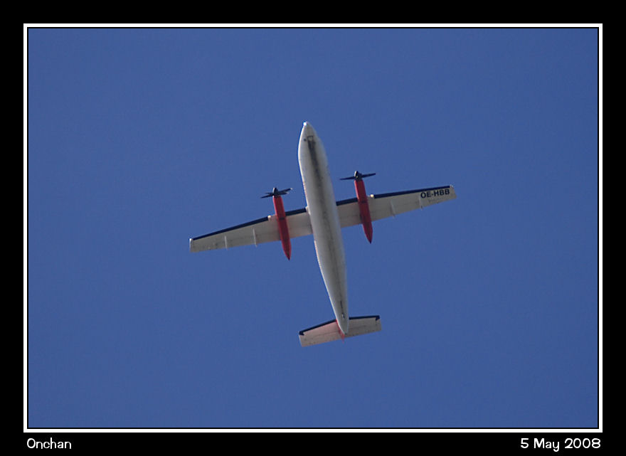On a day when sea fog badly affected Ronaldsway operations, Euromanx Dash8-Q200 OE-HBB is pictured in the hold at Carnane NDB. This turned out to be the last week of EuroManx operations