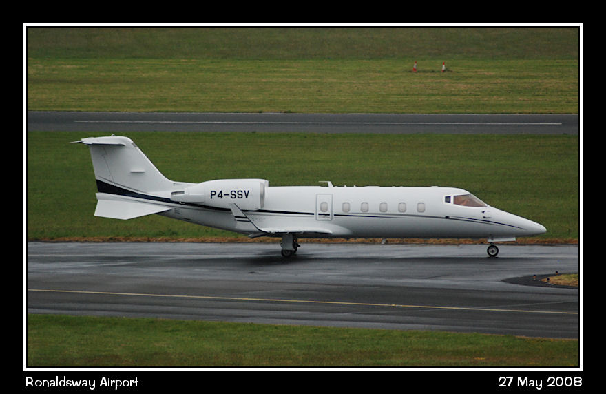 Aruba registered Learjet 60, P4-SSV, taxies in after arriving direct from Ukraine