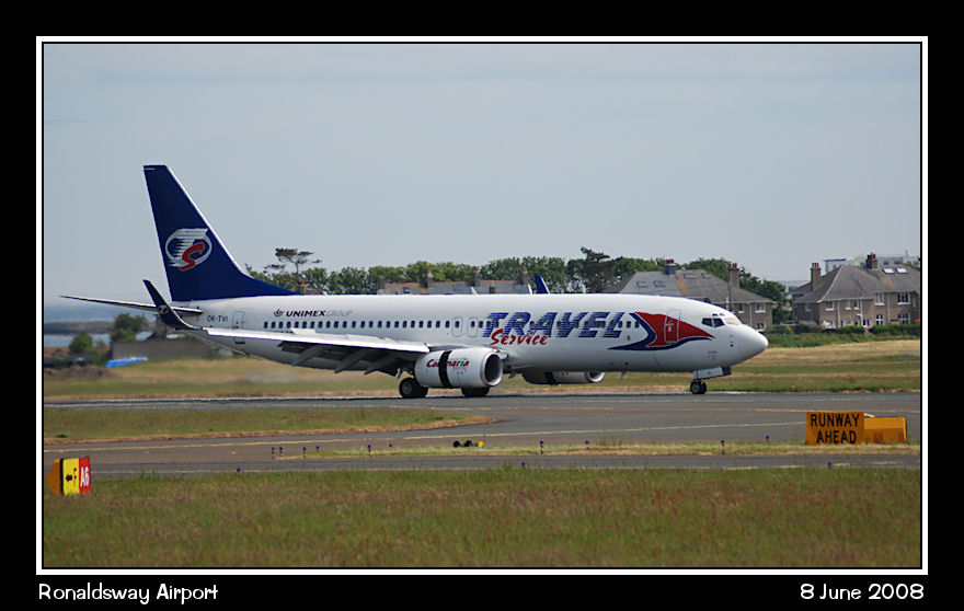 Travel Service Boeing 737-800, OK-TVI, rolls out after arriving from Italy