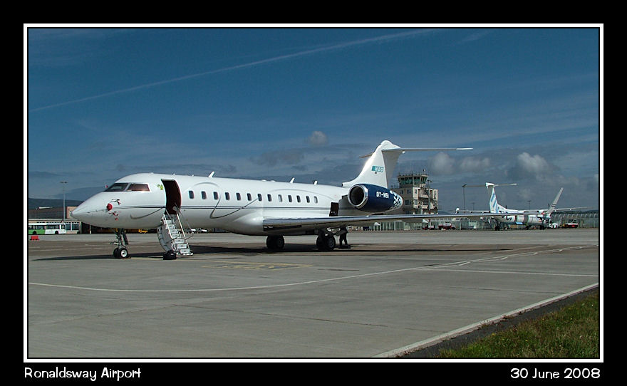 Global Express OY-MSI, parked on the west apron