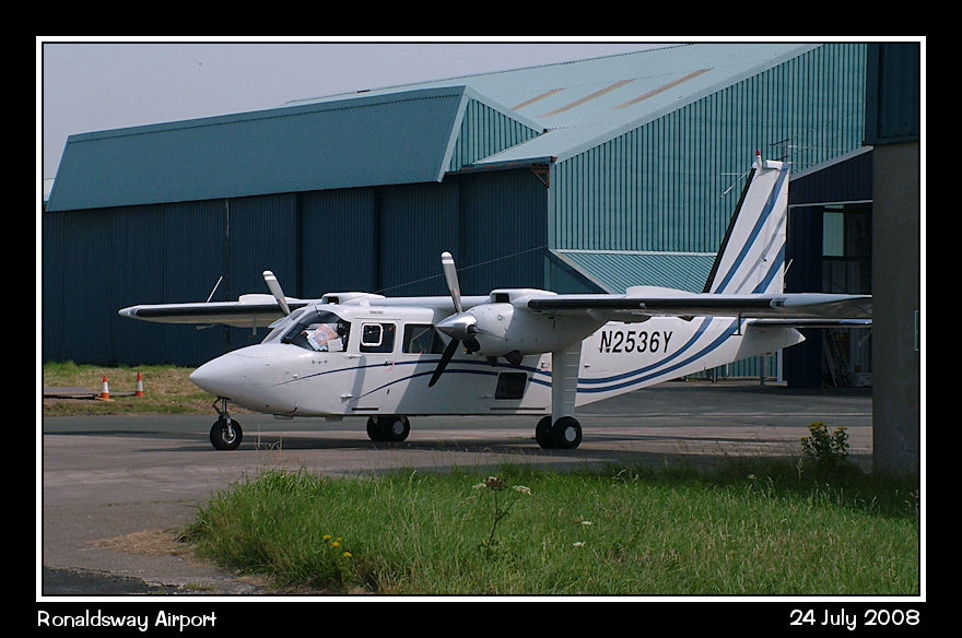 Ronaldsway based Turbine Islander, N2536Y, parked in Area Mike