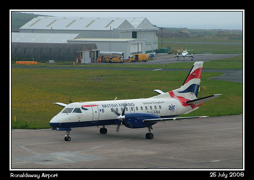 Loganair aircraft still in BA colours are becoming a rarity - Saab 340B G-LGNA taxies in