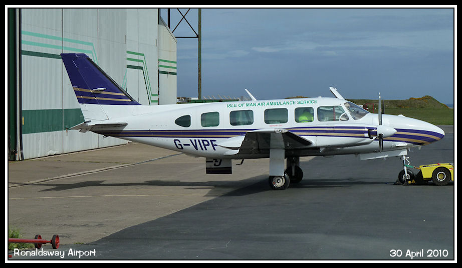 Looking very smart with newly applied IOM Air Ambulance Service titles, Capital Navajo G-VIPP