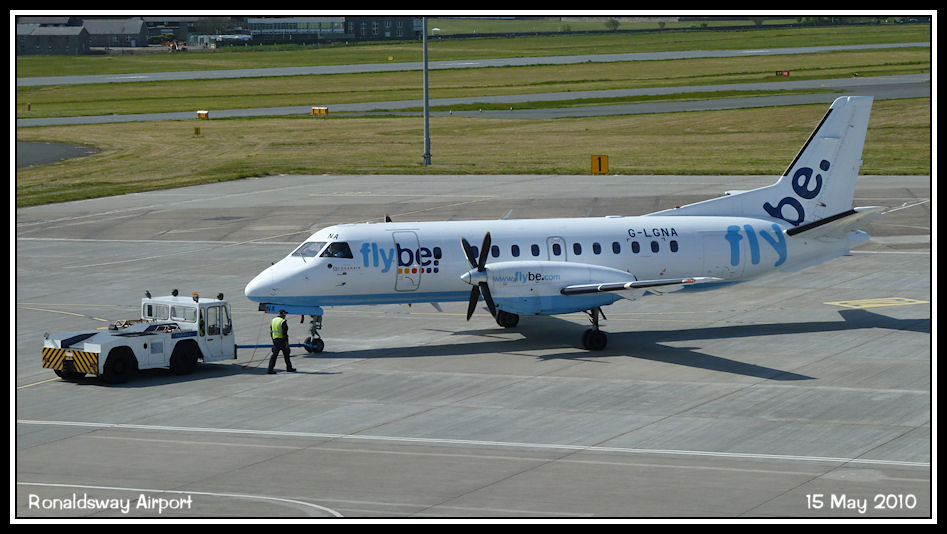 Loganair Saab 340B G-LGNA on pushback to operate a Glasgow service