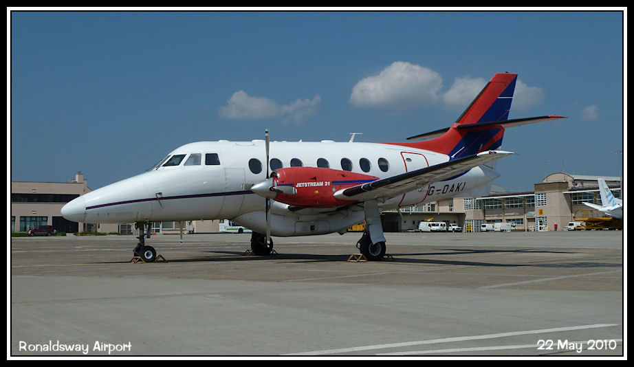 Taking a break from flying for Manx2, Jetstream 31 G-OAKI on the west apron