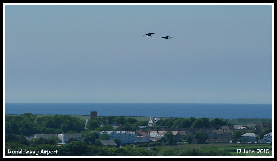 FAF Alpha Jets 'Mafia 1 & 2' on final over Castletown for a pairs go-around