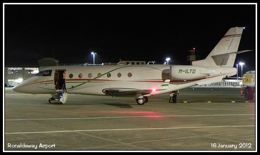 New on the Manx register, IAI Gulfstream G200 M-ILTD parked on the west apron