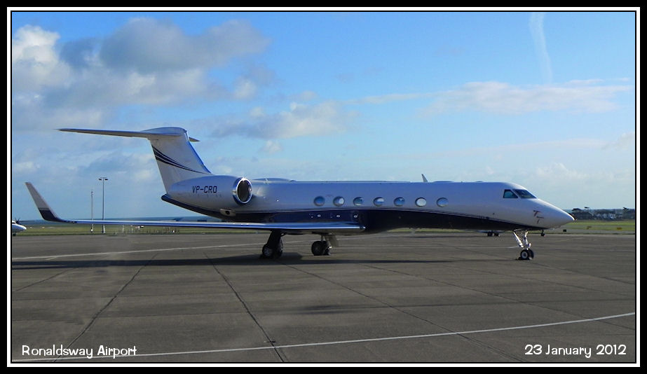 Gulfstream G550 VP-CRO parked on the west apron