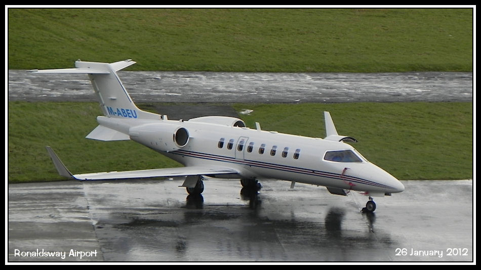 Arriving on the 23rd as VP-BSF, this Learjet 45 had just been towed out of the hanger, as M-ABEU on the Manx register