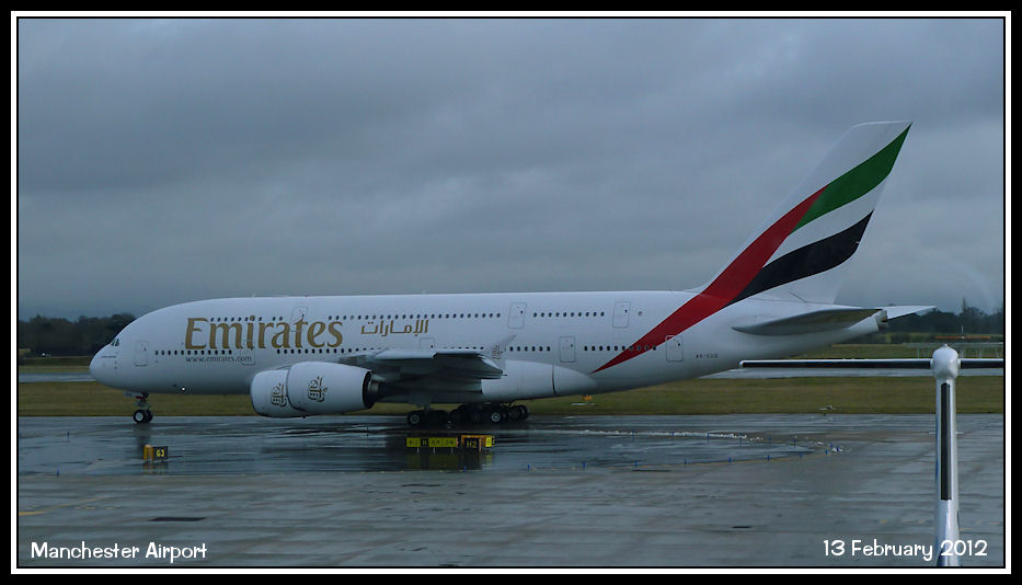 Emirates Airbus A380 A6-EDO taxies for departure to Dubai