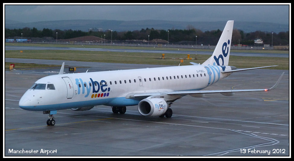 FlyBe Embraer ERJ195 G-FBEL taxies onto stand