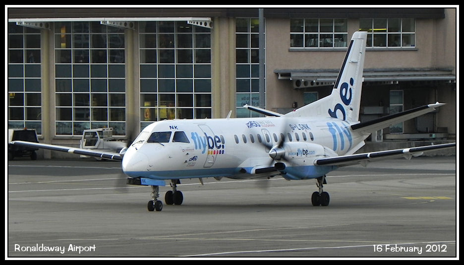 With 50th anniversary titles, Loganair Saab 340 G-LGNK taxies for departure to Edinburgh
