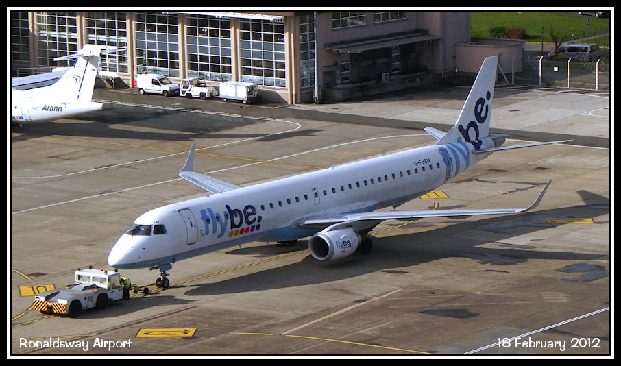 FlyBe Embraer ERJ195 G-FBEM on pushback operating a charter to Memingen, Germany