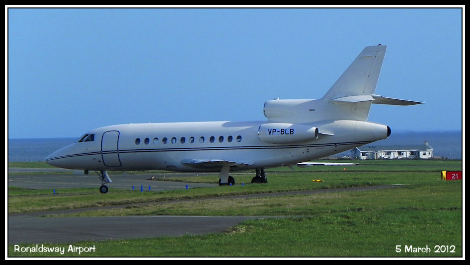 Dassault Falcon 900 VP-BLB after arriving at Ronaldsway