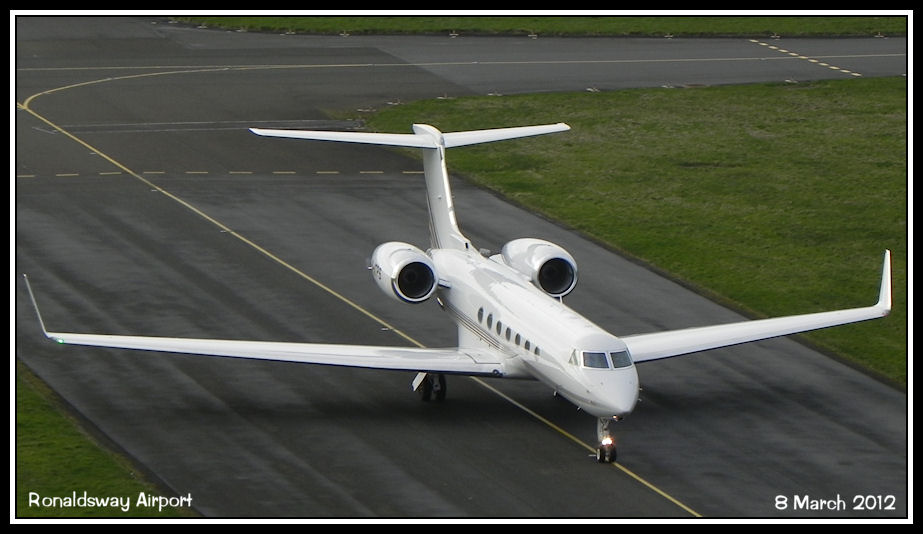 Gulfstream G550 M-ATPS shows off its wingspan on taxiway Foxtrot