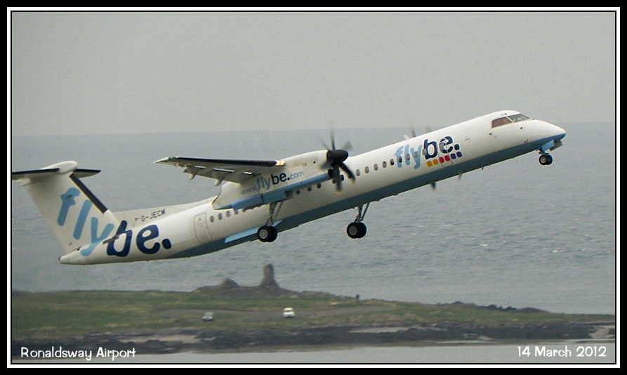 FlyBe Dash8-Q400 G-JECM demonstrates a typically steep climb angle after departure