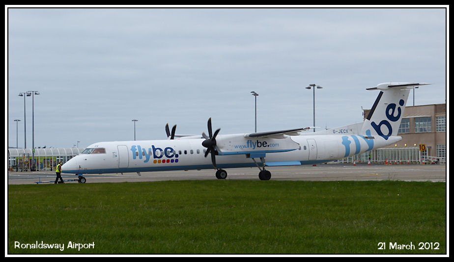 FlyBe Dash8 Q400 G-JECX has the towbar disconnected after pushback