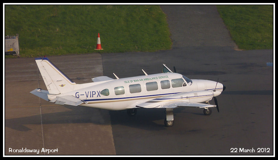 The Isle of Man Air Ambulance, Navajo Chieftain G-VIPX, pictured between duties in Area Hotel