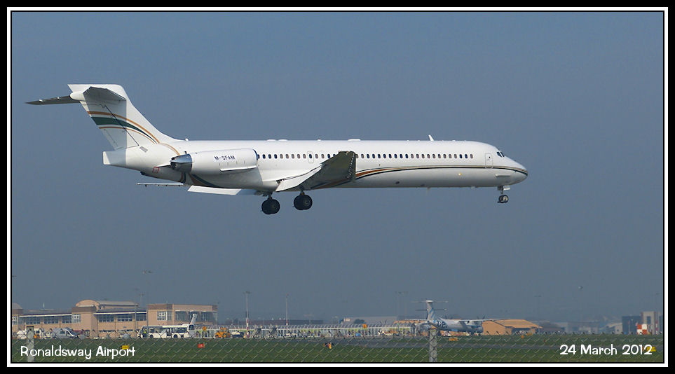 McDonnell Douglas MD87 M-SFAM about to touch down on runway 08, departing later for Cambridge (UK)